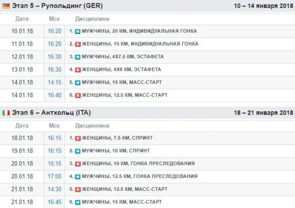 Биатлон: Кубок Мира расписание на 2017-2018