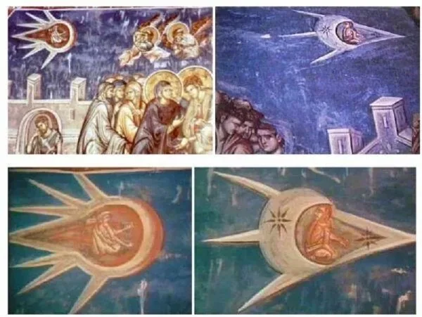 В монастыре Высокие Дечаны в Косово запечатлели на фото необычную фреску. На ней изображено пришествие Иисуса Христа на Землю, однако оно опровергает всем известную теорию о непорочном зачатии Девы Марии. На фреске нарисованы люди, поднявшие головы к небу, где летит объект, похожий на комету или космический корабль с младенцем "на борту". Это изображение стало поводом для предположения о том, что Иисуса Христа на Землю на самом деле подбросили пришельцы.