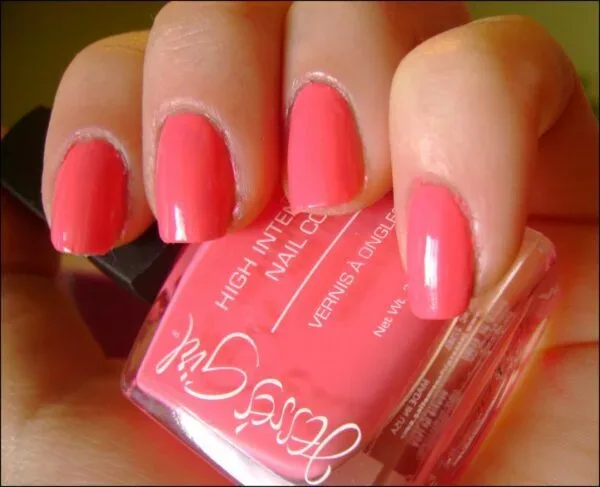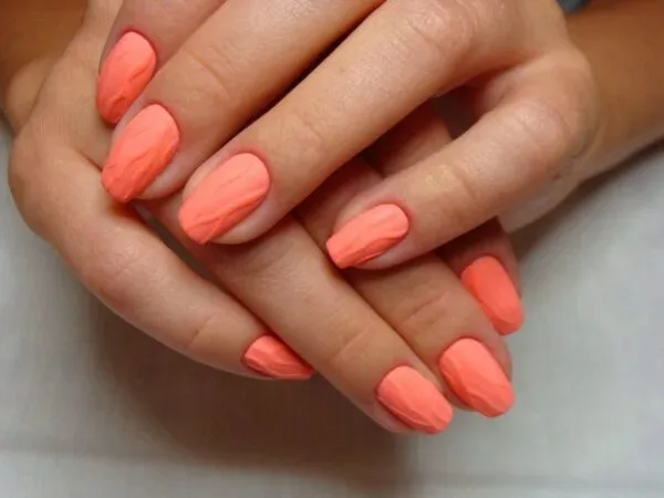 Замечательно оттеняет загорелую кожу, смотрится стильно, можно выполнить дома и заменить коралловый блеск маникюра на матовый.