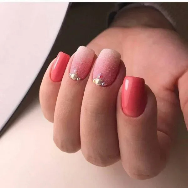 Праздничный коралловый маникюр.